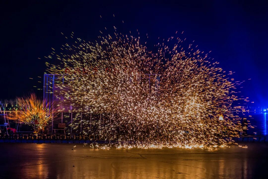 打铁花 、火凤凰表演 。打铁花已成为嘉年华的一项代表性活动,今年春节非遗打铁花表演将继续与游客相约,而且还新引进了飞天火凤凰等将呈现“龙飞凤舞”的视觉盛宴。鼓舞盛世 南和农业嘉年华今年还精心设计制作安装了大型灯组、十二生肖、灯笼鼓阵等主打龙年元素。此外,南北狮王争霸也将精彩亮相。